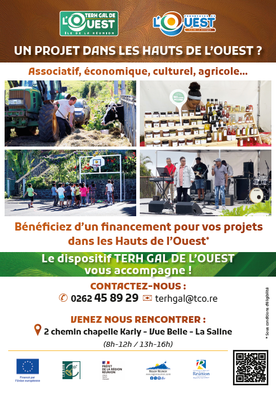 Vous pouvez d’ores et déjà préparer cette première prise de contact en vérifiant ici que votre projet se situe dans le périmètre des hauts de l’Ouest : https://www.tco.re/terhgal/verifiez-votre-eligibilite-aux-subventions-leader/.