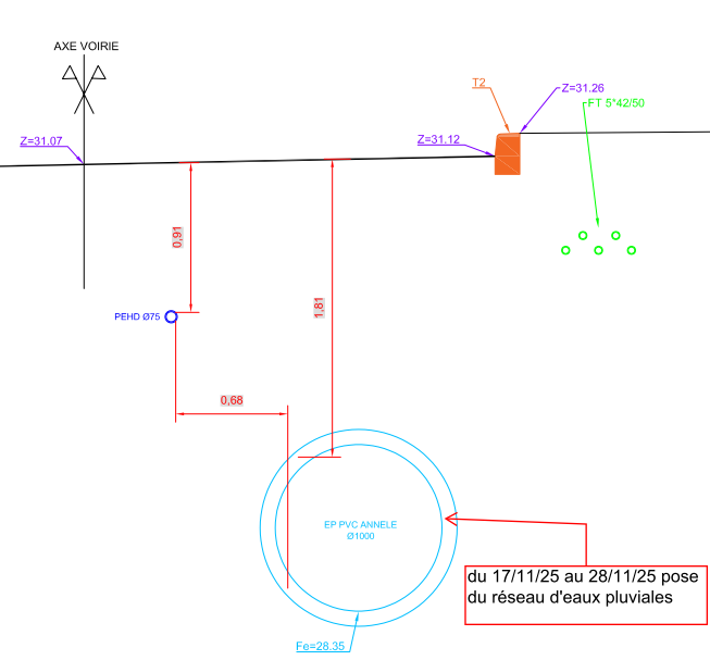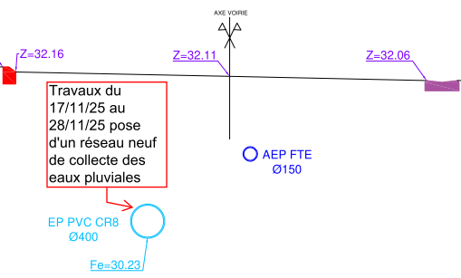 - Pose d’un réseau neuf de collecte des Eaux Pluviales,