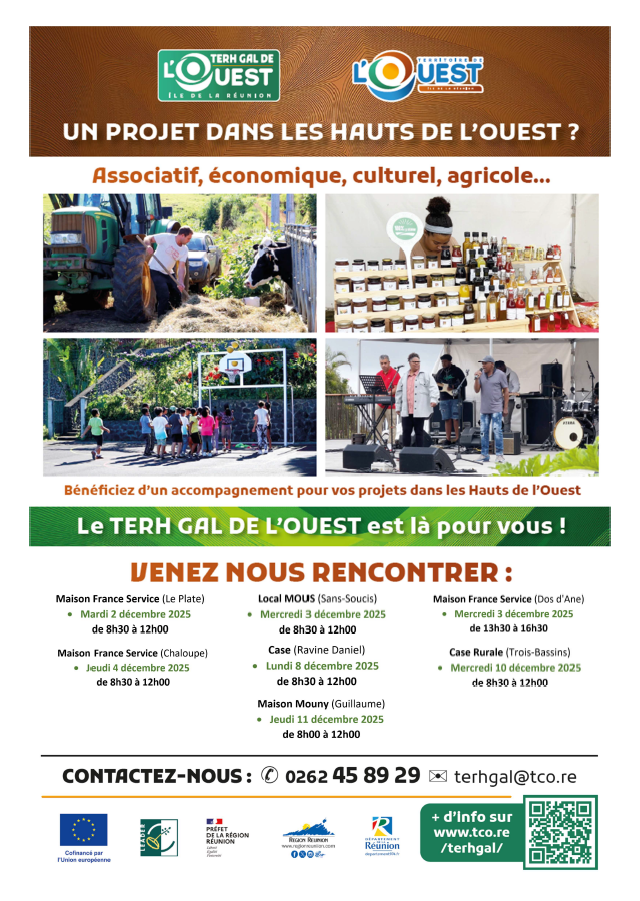 Du 1er avril au 22 juin 2026, les équipes du TERH GAL de l’Ouest viennent à votre rencontre dans les hauts de La Possession, Saint-Paul, Trois-Bassins et Saint-Leu.