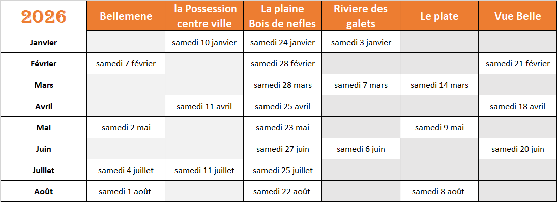 Le trokalimobile est présent tous les samedis d’ouverture de la déchèterie éphèmére de la Plaine bois de nèfles et au minimum 1 samedi par trimestre pour les autres déchèteries éphémères (voir planning ci-dessous)
