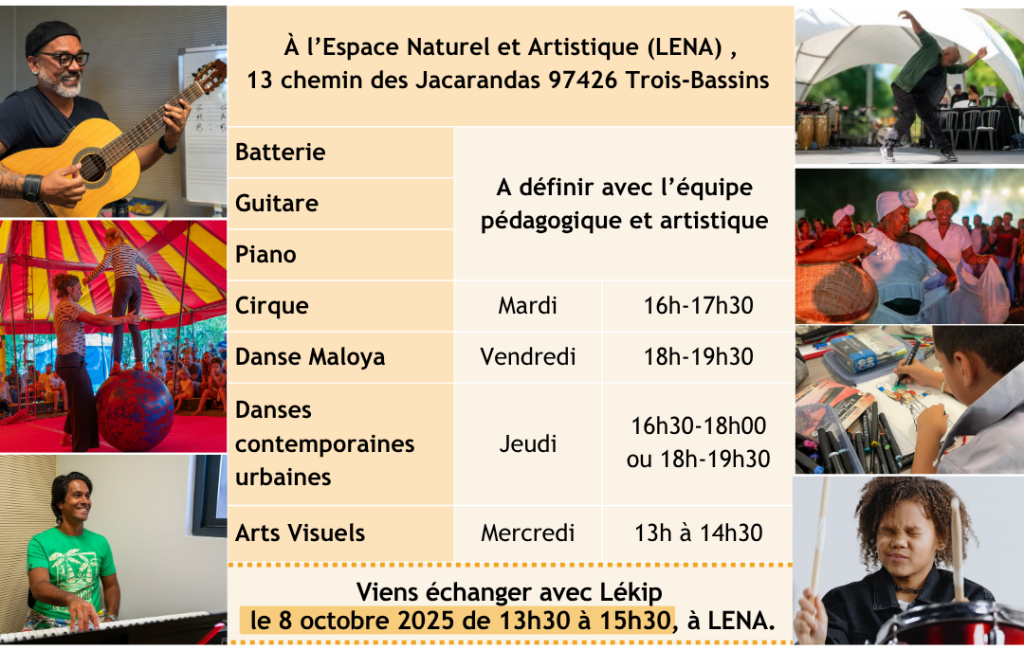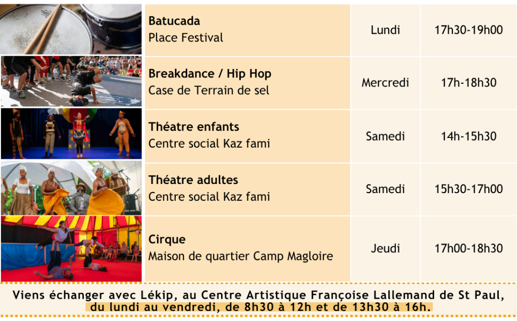 - 2ème option : réaliser votre demande de pré-inscription au Centre Artistique Françoise Lallemand – 100, rue des Cardinaux, Plateau Caillou, 97460 Saint-Paul