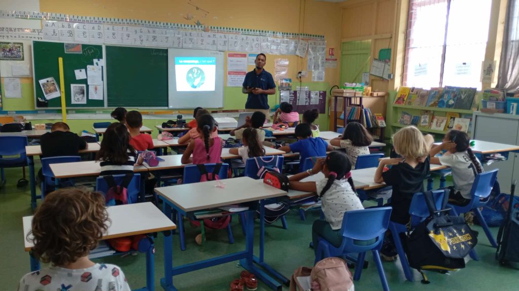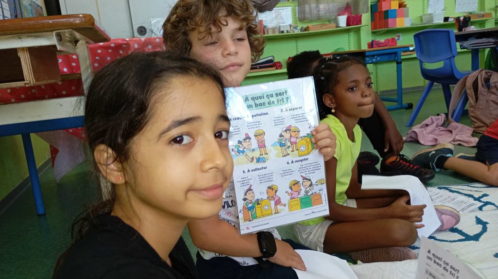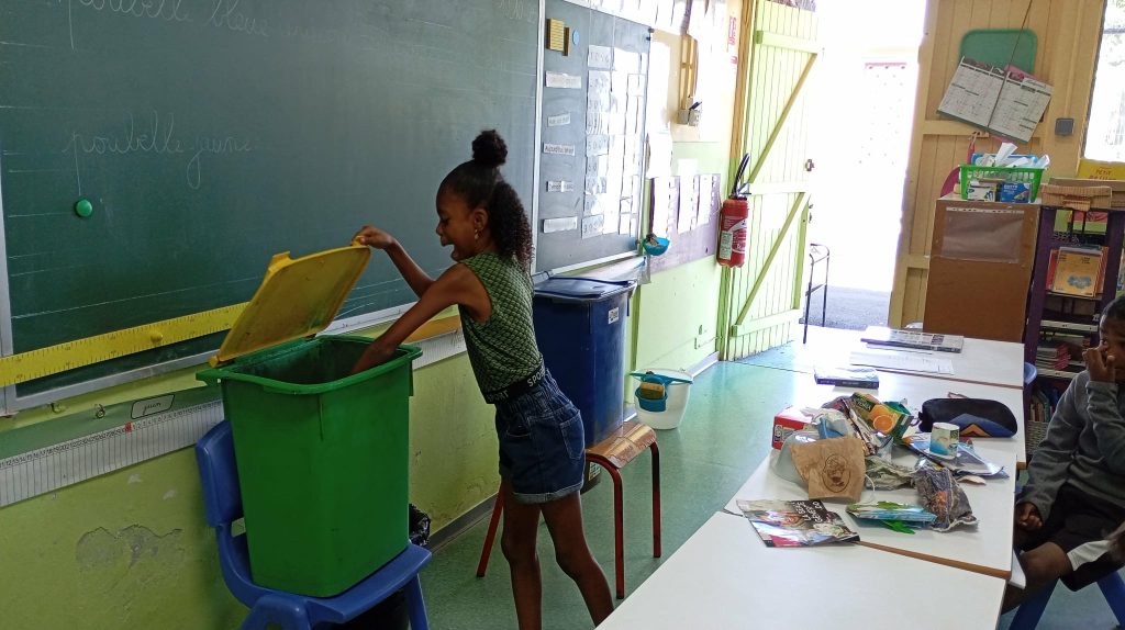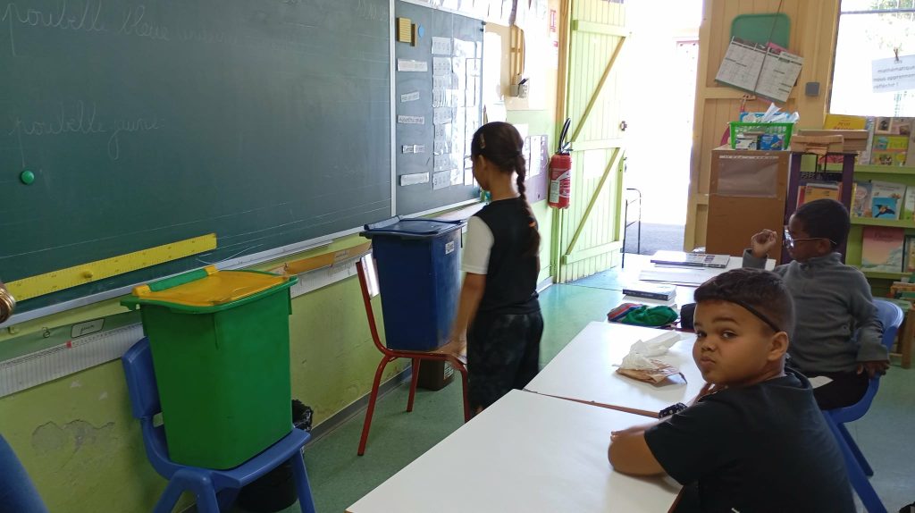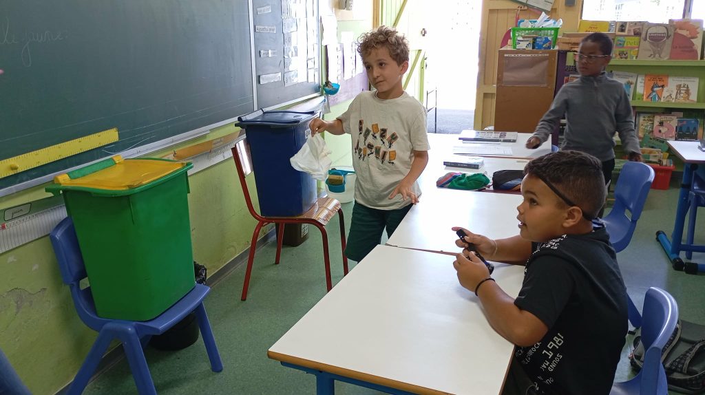 Cette année la classe de CE2 a demandé au Territoire de l’Ouest d’intervenir à plusieurs reprises en classe. Nous avons eu déjà la présentation du tri des déchets : les élèves ont dans un premier temps parler du tri qu’ils effectuaient chez eux et ont eu un rappel de ce qu’ils fallait mettre dans chaque poubelle. Ils ont mis la main à la pâte pour trier les déchets ramenés par l’intervenante.