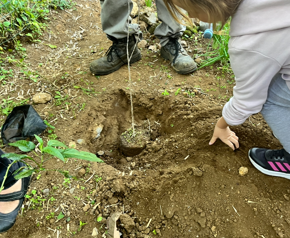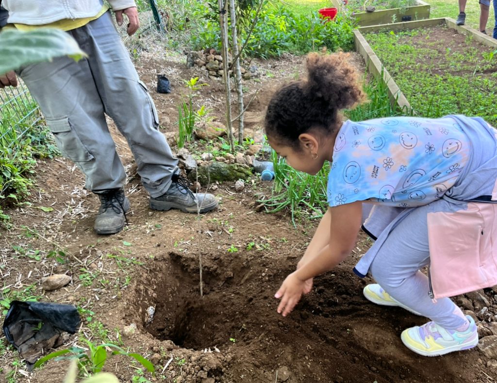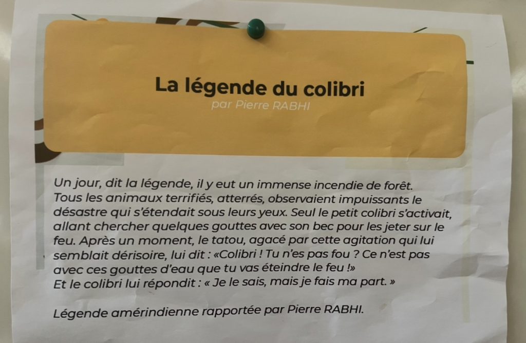 Une élève de CM2 nous a lu la légende du Colibri avant que nous plantions les arbres :