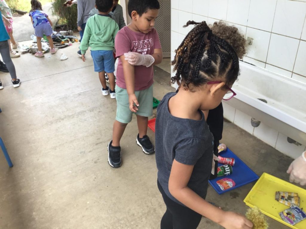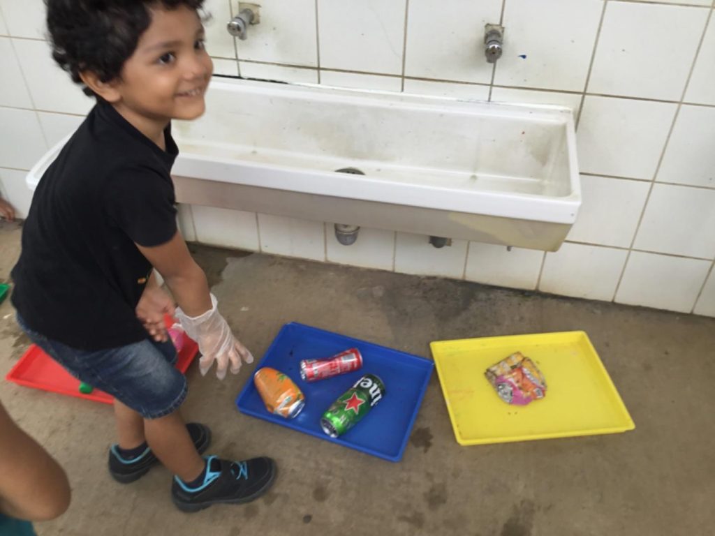 Nous avons ensuite trié les déchets par catégorie; carton, verre,papier, métal et plastique.
