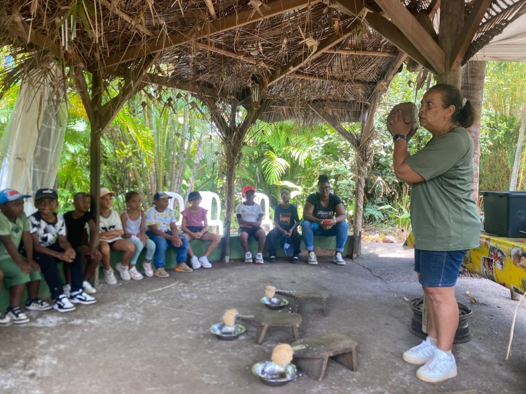 L’atelier consacré au cocotier a été un moment fort de la journée. Les enfants ont appris à reconnaître les différentes parties de cet arbre incontournable de La Réunion : le tronc, les feuilles, la fleur, la fibre et la coquille. Ils ont aussi découvert à quoi servent toutes ces parties dans la vie de tous les jours. L’animatrice leur a présenté deux noix de coco : l’une contenant seulement de l’eau et l’autre avec de la chair, pour montrer la différence. Les élèves ont même pu râper du coco à l’ancienne, comme on le faisait autrefois pour récupérer la pulpe. Ils ont été très impressionnés partout ce que ce seul arbre peut fournir.