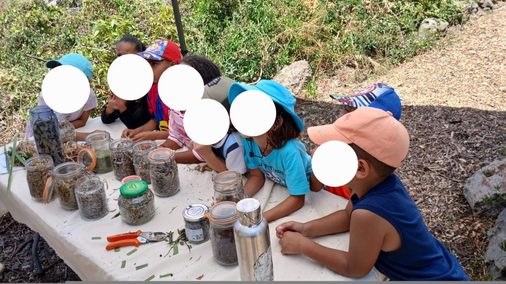 Nous apprenons à reconnaître d’autres plantes que nous connaissons moins: le ayapana, le kaloupilé, le bois d’arnette qui sent la pomme, le bissap, la sauge (si tu la dans ton jardin, tu n’as pas besoin de médecin), le bois de senteur, le bois de sable.