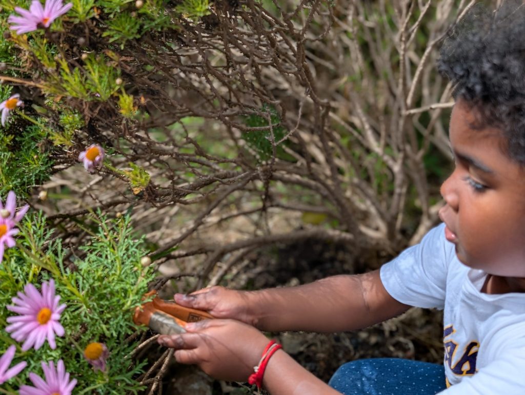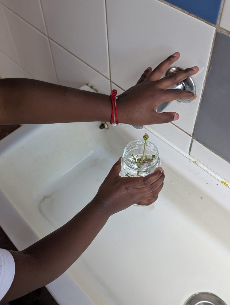 Nous avons commencé notre goûter potager. Nous avons fait des boutures.