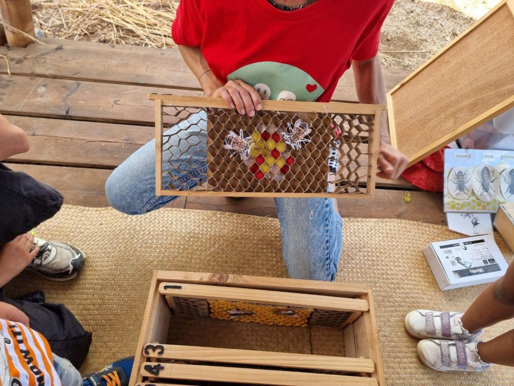 On nous a expliqué comment s’organisent les abeilles dans la ruche avec la reine et les ouvrières.