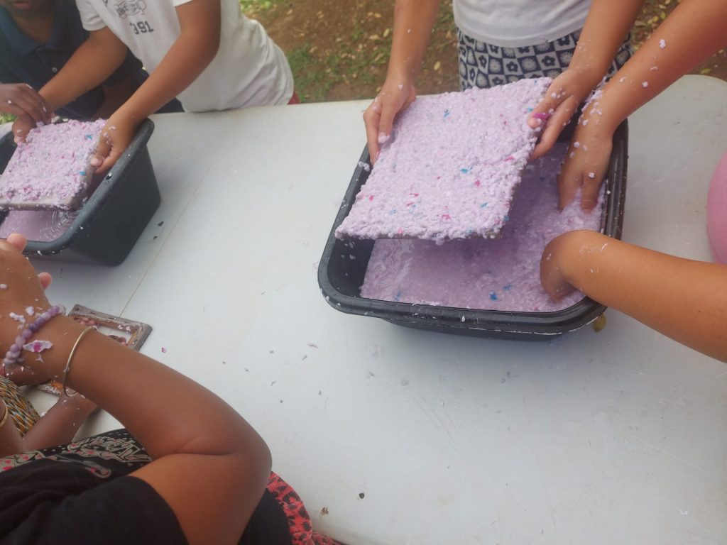 Divers ateliers ont ravi les élèves  : atelier bouturage, confection de chapeau, chasse aux trésors, papier recyclé, le marchand….