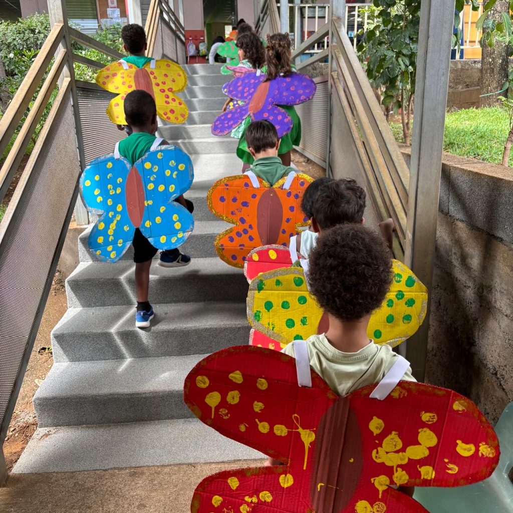 Avec pour thème, le jardin, le jour de Mardi gras à l’école maternelle de Piton Saint Leu, nous, les enfants de Moyenne Section B et C, nous nous sommes déguisés en fleurs et en papillons.