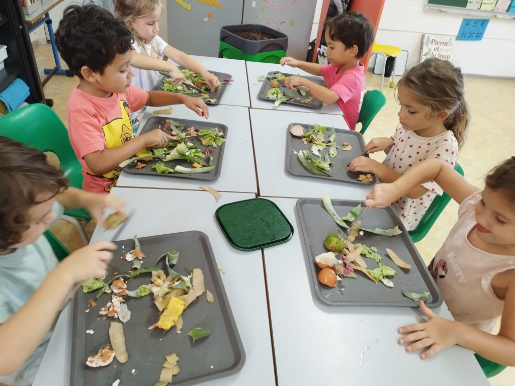Les MS découpent chaque semaine les déchets collectés et nous récoltons le jus.