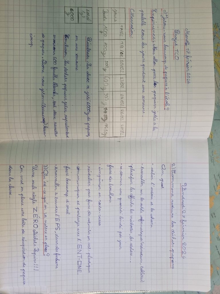 Pendant une semaine, nous avons pesé les déchets de papier produits chaque jour dans la classe. Résultat : nous utilisions beaucoup trop de feuilles !