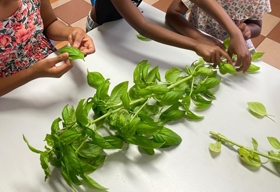 La seconde étape du projet a conduit les élèves en cuisine pour transformer leur récolte en pesto.