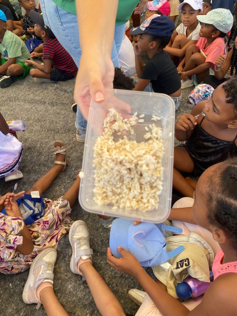 À la fin de la visite, nous avons même pu goûter du riz qui avait été cultivé dans ce même champ l’année dernière. C’était très bon !