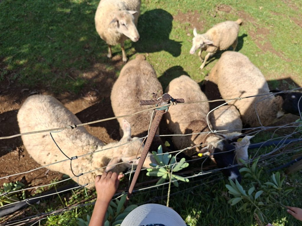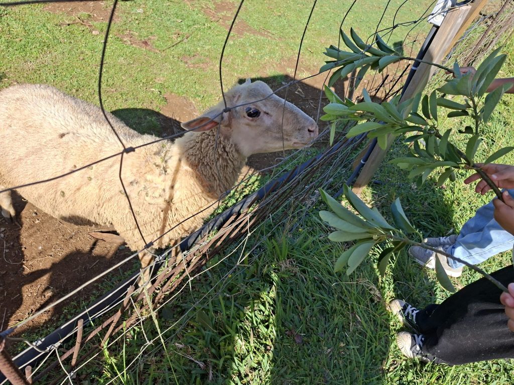 C’était trop bien de leur donner du foin et des branchages ! les moutons étaient très doux !