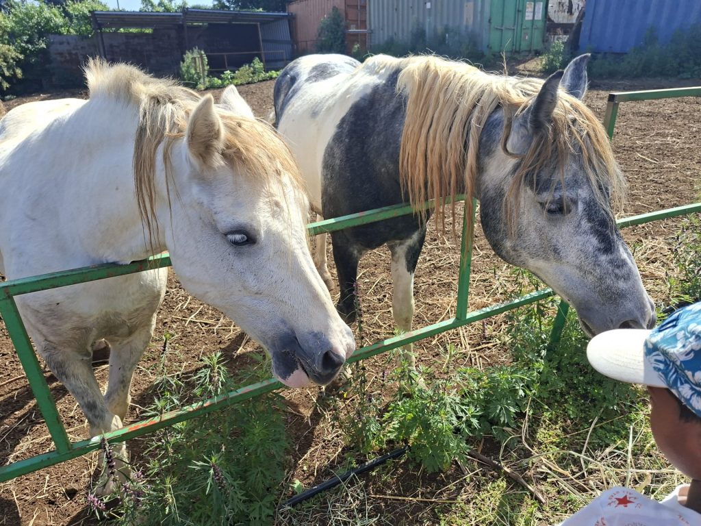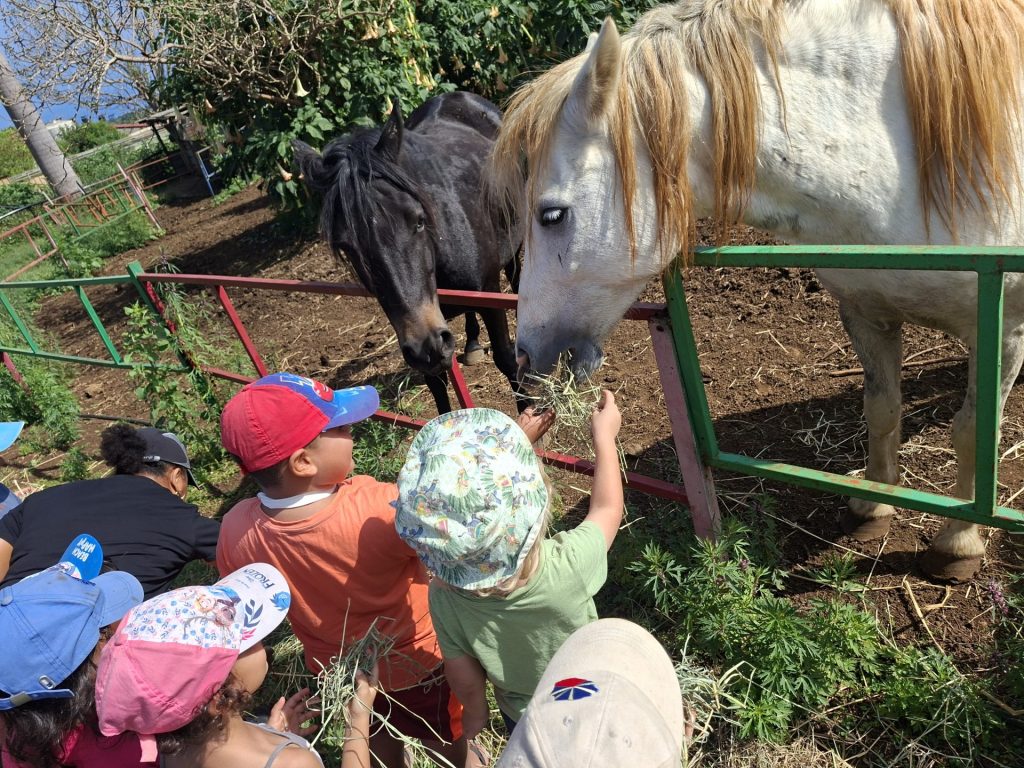 Les chevaux aussi ont mangé du foin ! C’était un petit peu impressionnant de les nourrir et de les caresser ! Ils sont tellement grands !