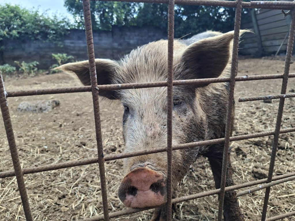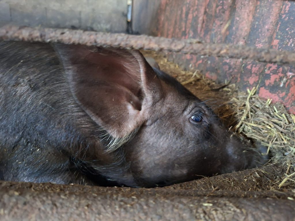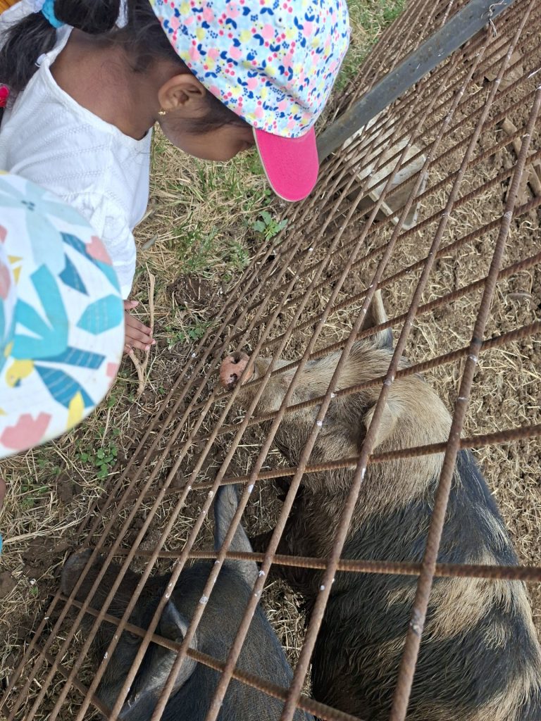 Les cochons faisaient la sieste à l’ombre! On les a caressé ! Ils avaient des poils très durs et ils sentaient un petit peu mauvais !