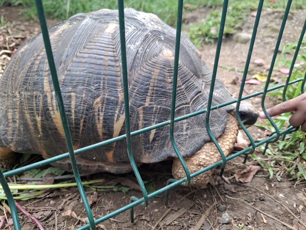 On a caressé les tortues Radiatas et observé des grosses carpes magnifiques dans leur bassin !