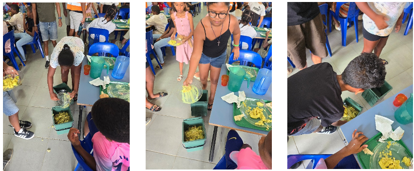 Une fois le repas terminé, 4 à 5 élèves responsables ont récupéré les restes dans des bio-seaux.
