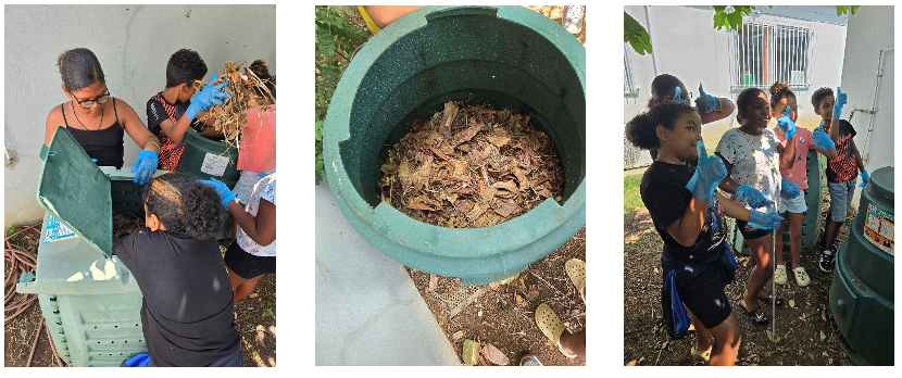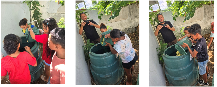 Nous avons eu une réunion avec les éco-délégués de toutes les classes avec M. Pothin (professeur du CE2P) et M. Mounoussamy (le directeur). Nous avons regardé une vidéo qui montrait comment utiliser le composteur et ce qu’on pouvait mettre ou ne pas mettre à l’intérieur. On peut mettre des restes et des épluchures de fruits et de légumes mais pas trop de peaux d’orange parce que c’est acide et ça rend le compost trop liquide.
