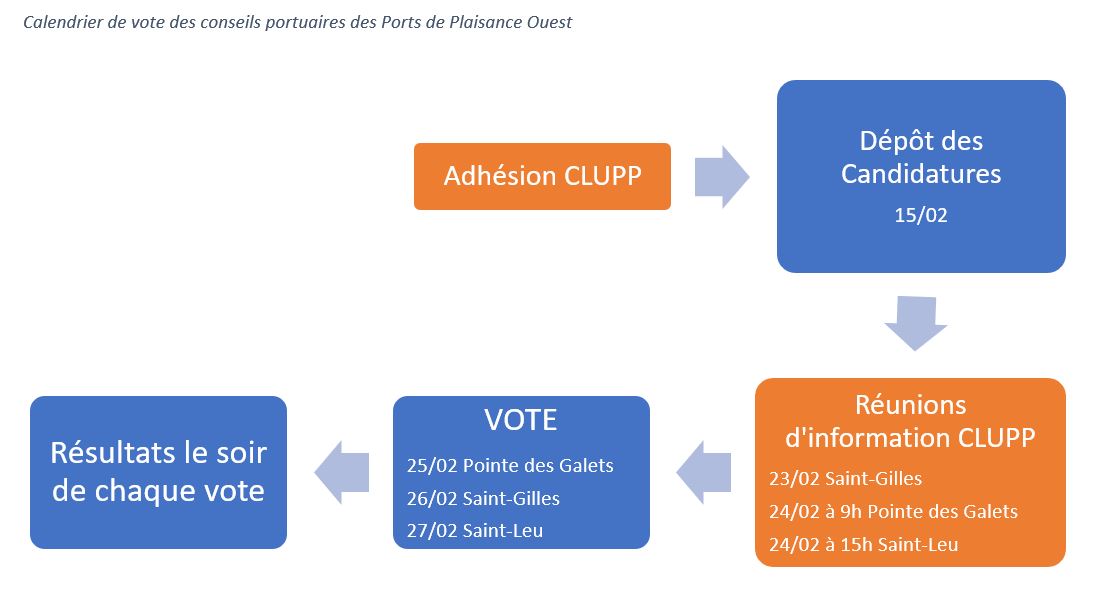 Les adhésions aux CLUPP de chaque port et les candidatures dans chacun des collèges devront être retournées au plus tard le dimanche 15 février 2026 à 23h59.